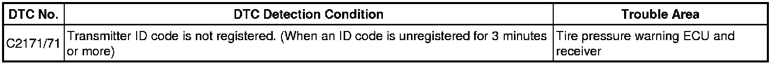 TIRE PRESSURE MONITORING: TIRE PRESSURE WARNING SYSTEM (for Hatchback): C2171/71: Transmitter ID not Registered