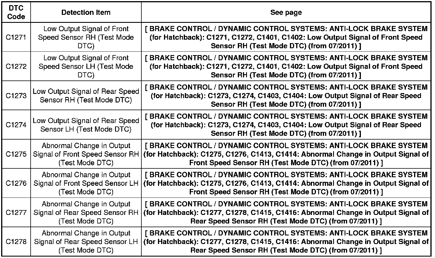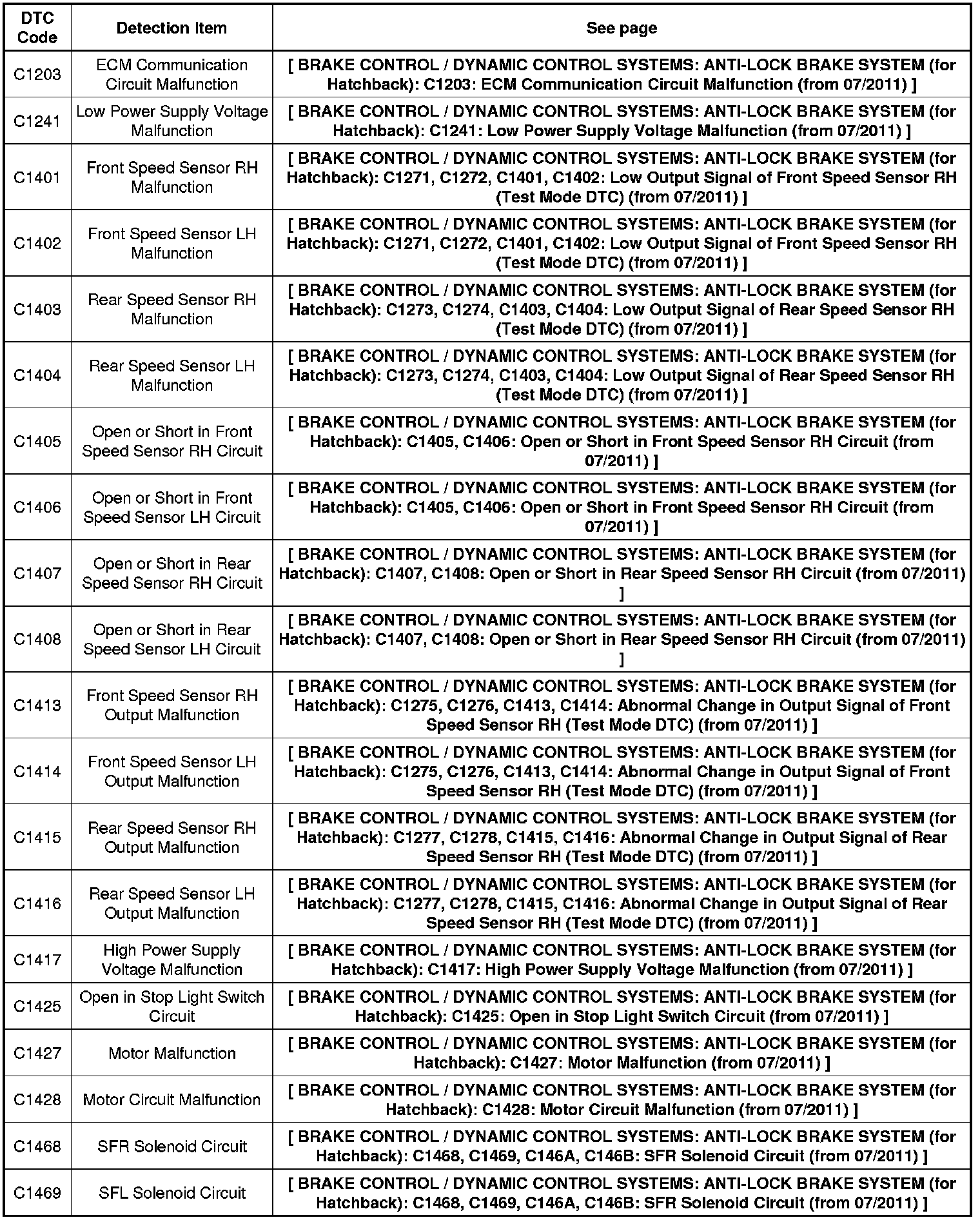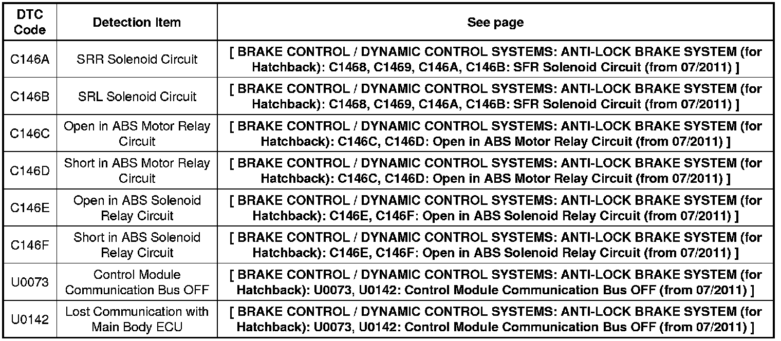 BRAKE CONTROL / DYNAMIC CONTROL SYSTEMS: ANTI-LOCK BRAKE SYSTEM (for Hatchback): DIAGNOSTIC TROUBLE CODE CHART