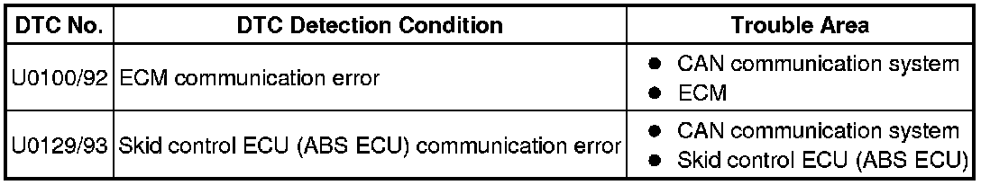 DTCs other than U0100/92 and U0129/93 are not output.