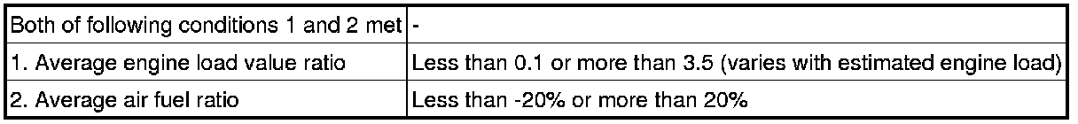 The ECM monitors the average engine load value ratio to check the mass air flow meter for malfunctions. The average engine load value ratio is obtained by comparing the average engine load calculated from the MAF meter output to the average engine load estimated from the driving conditions, such as the engine speed and the throttle opening angle. If the average engine load value ratio is below the threshold value, the ECM determines that the intake air volume is low, and if the average engine load value ratio is above the threshold value, the ECM determines that the intake air volume is high.