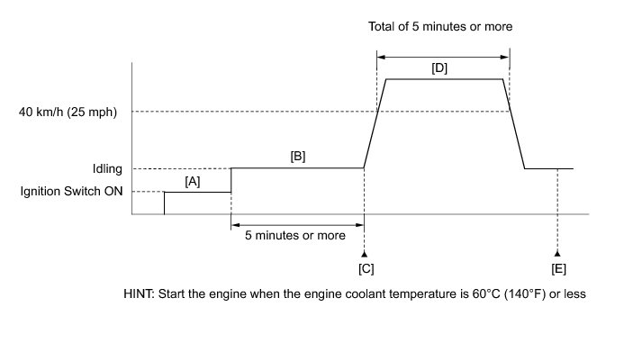 14. Drive the vehicle at 40 km/h (25 mph) or more for a total of 5 minutes or more [D].