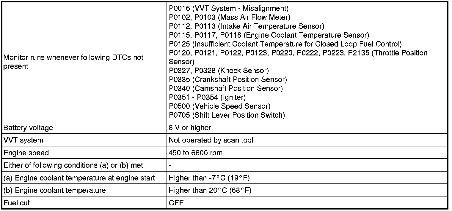 * If the freeze frame data record of the engine coolant temperature is below 75°C (167°F), the misfire may be detected only when the engine is cold.