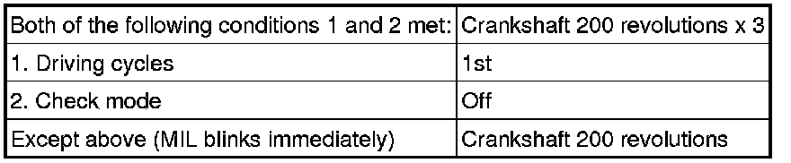 - An excessive number of misfires (approximately 20 to 50 misfires per 1000 crankshaft revolutions) occurs a total of 4 times.