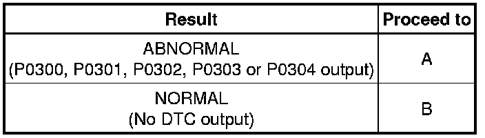 If any DTCs other than P0300, P0301, P0302, P0303 and P0304 are output, troubleshoot those DTCs first.