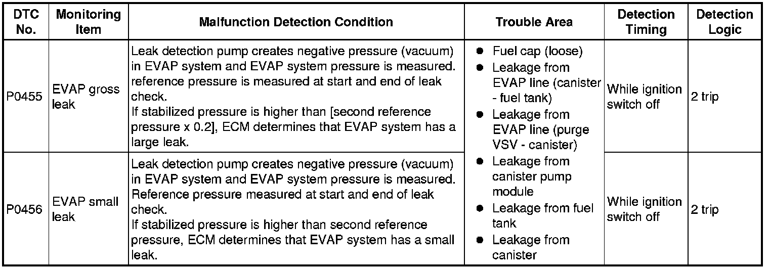 - (a) P0455: EVAP (Evaporative Emission) gross leak