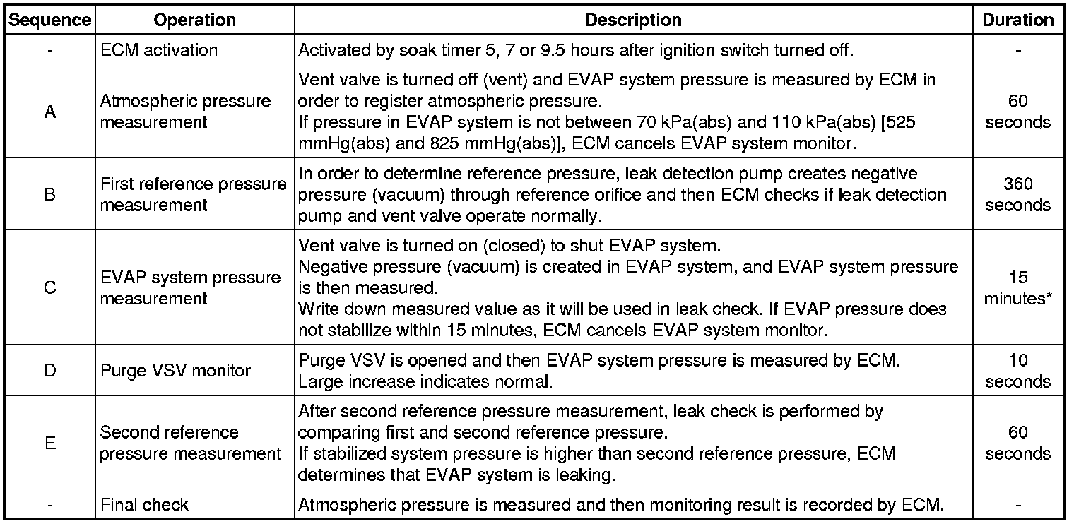 *: If only a small amount of fuel is in the fuel tank, it takes longer for the EVAP pressure to stabilize.