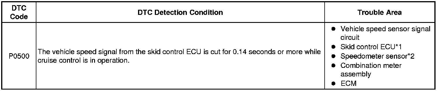 CRUISE CONTROL: CRUISE CONTROL SYSTEM (for Hatchback): P0500: Vehicle Speed Sensor Malfunction