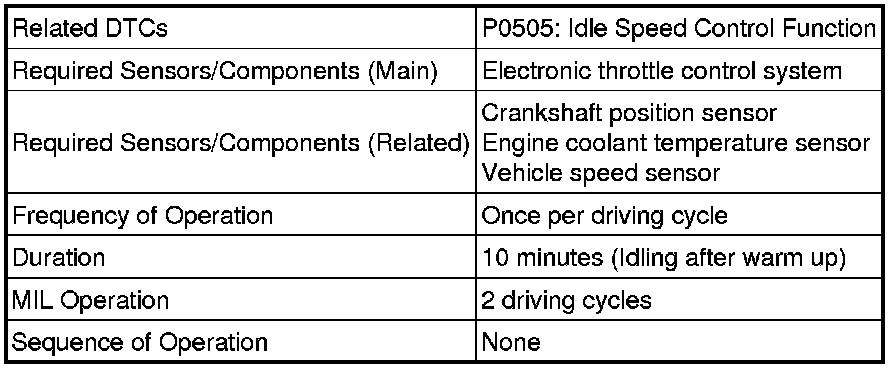 * The following conditions may also cause DTC P0505 to be stored: