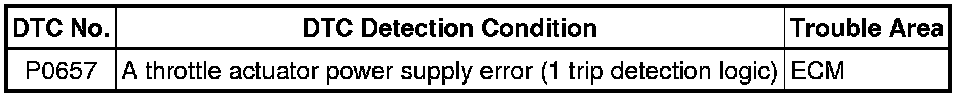 1NZ-FE ENGINE CONTROL: SFI SYSTEM (for Hatchback): P0657: Actuator Supply Voltage Circuit / Open