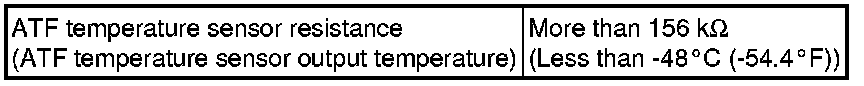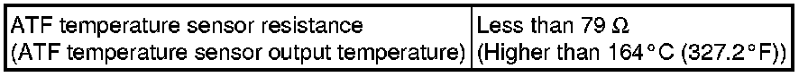 If the resistance is outside the specified range at either of the ATF temperatures shown in the table below, the driveability of the vehicle may be affected.