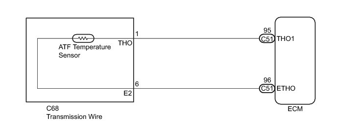 The sensor resistance changes with the transmission fluid temperature. As the temperature rises, the sensor resistance decreases. The ECM applies a voltage to the temperature sensor through ECM terminal THO1, and the ECM calculates the fluid temperature based on the voltage signal.