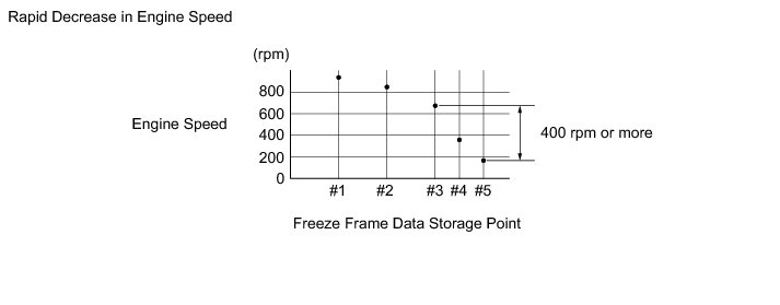 (1) In the freeze frame data, the decrease in engine speed from #3 to #5 is 400 rpm or more.