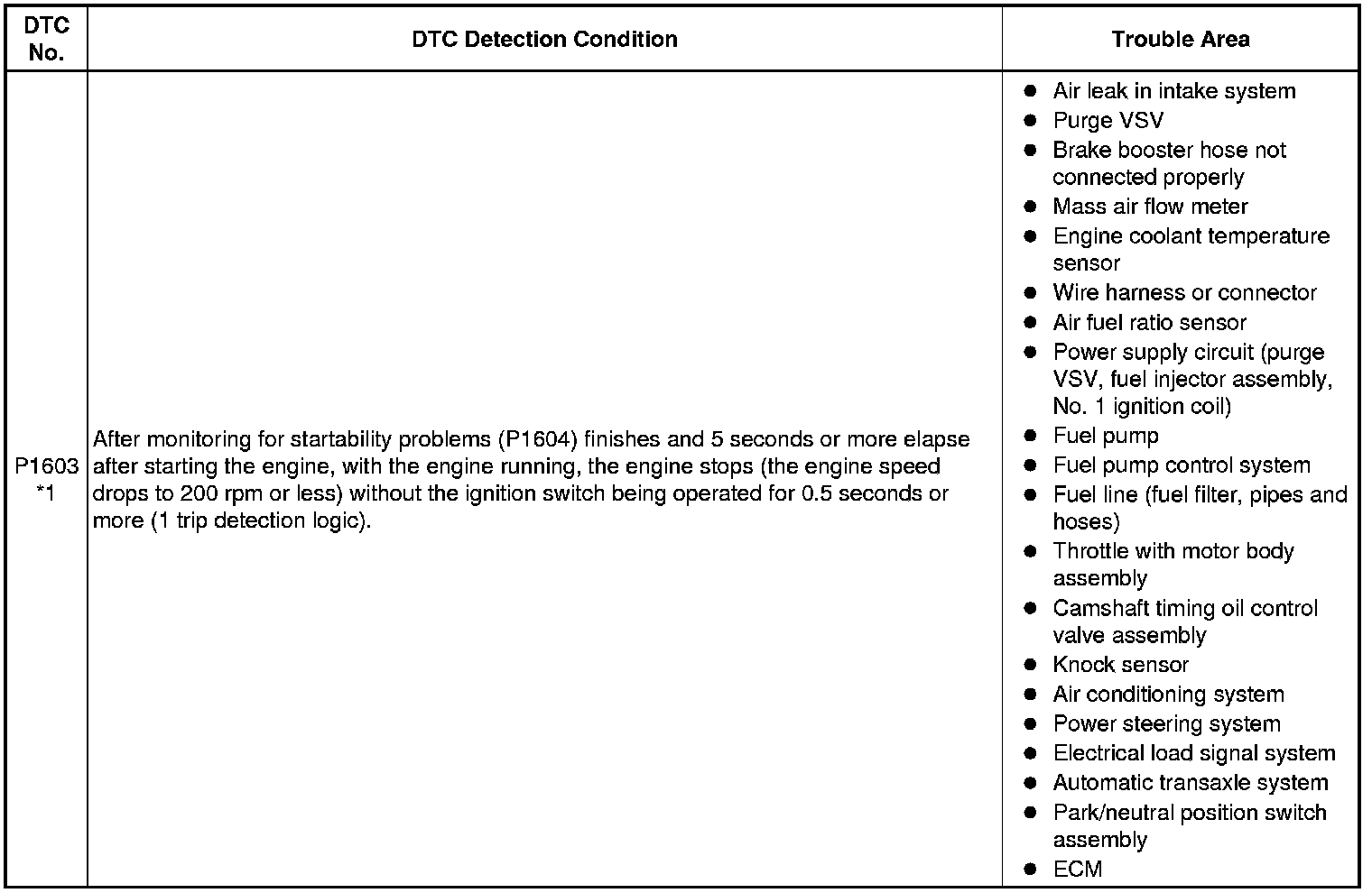 1NZ-FE ENGINE CONTROL: SFI SYSTEM (for Hatchback): P1603, P1605: Engine Stall History