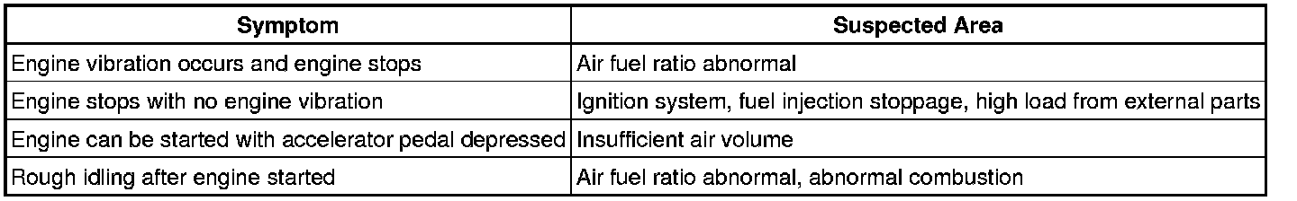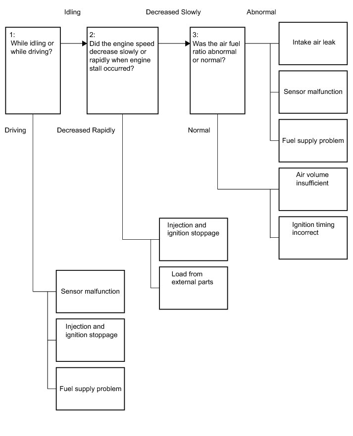 - If the engine stalled when the intake air volume was low (during idling or deceleration), there may be a decrease in torque due to an incorrect air fuel ratio, etc.