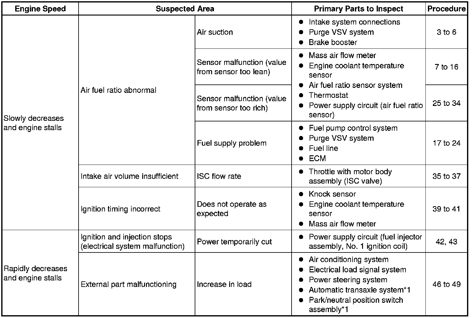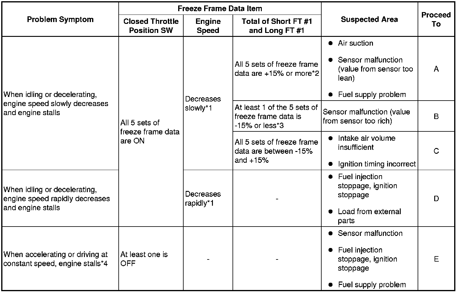 * *2: If the air fuel ratio sensor is malfunctioning and constantly outputs a value indicating the air fuel ratio is lean, the actual air fuel ratio will become rich and the engine may stall.