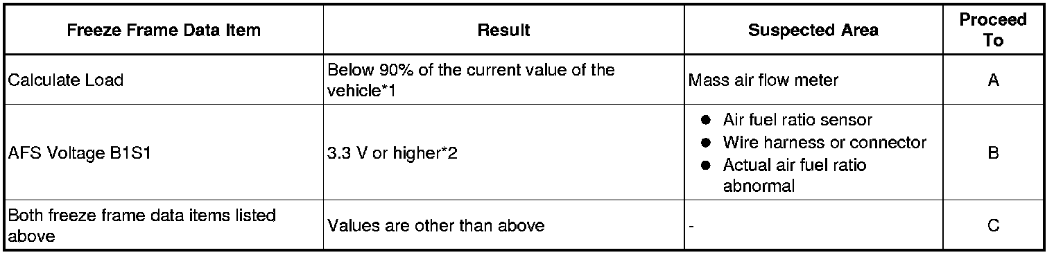 * *1: If the mass air flow meter is malfunctioning, the freeze frame data will show a low engine load value.