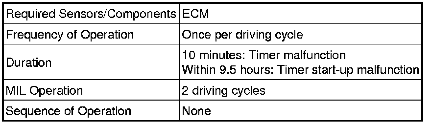 1. While the engine is running, the ECM monitors the synchronization of the soak timer and the CPU clock. If these two are not synchronized, the ECM interprets this as a malfunction, illuminates the MIL and stores the DTC.