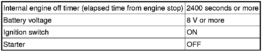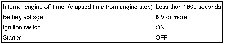2. If the soak timer activates the ECM even though only a short amount of time has elapsed since the ignition switch was turned off, or if the soak timer does not activate the ECM even though a considerable amount of time has elapsed since the ignition switch was turned off, the ECM determines that the soak timer is malfunctioning, illuminates the MIL and stores a DTC the next time the ignition switch is turned ON.