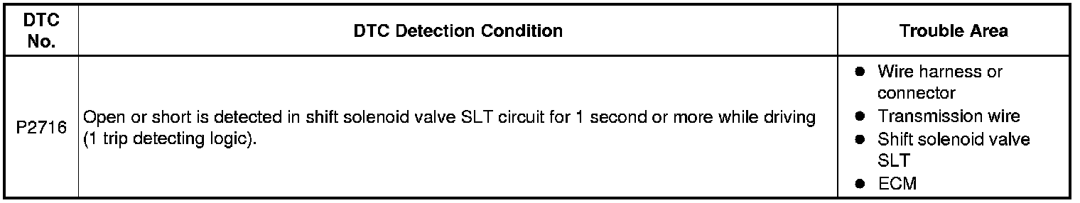 U340E AUTOMATIC TRANSMISSION / TRANSAXLE: AUTOMATIC TRANSAXLE SYSTEM (for Hatchback): P2716: Pressure Control Solenoid "D" Electrical (Shift Solenoid Valve SLT)