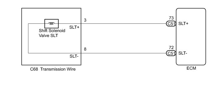 When an open or short in the linear solenoid valve (SLT) circuit is detected, the ECM interprets this as a fault. The ECM turns on the MIL and stores the DTC.