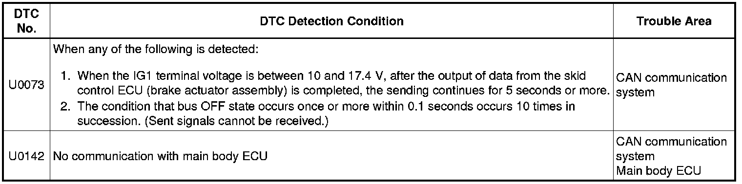 BRAKE CONTROL / DYNAMIC CONTROL SYSTEMS: ANTI-LOCK BRAKE SYSTEM (for Hatchback): U0073, U0142: Control Module Communication Bus OFF