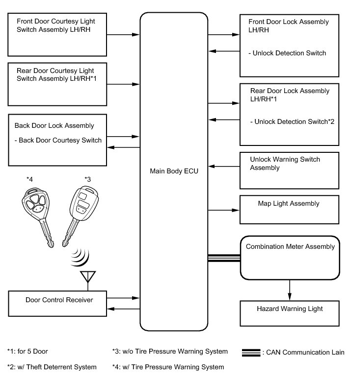 DOOR LOCK: WIRELESS DOOR LOCK CONTROL SYSTEM (for Hatchback): SYSTEM DIAGRAM