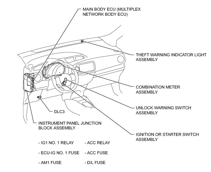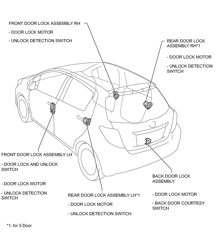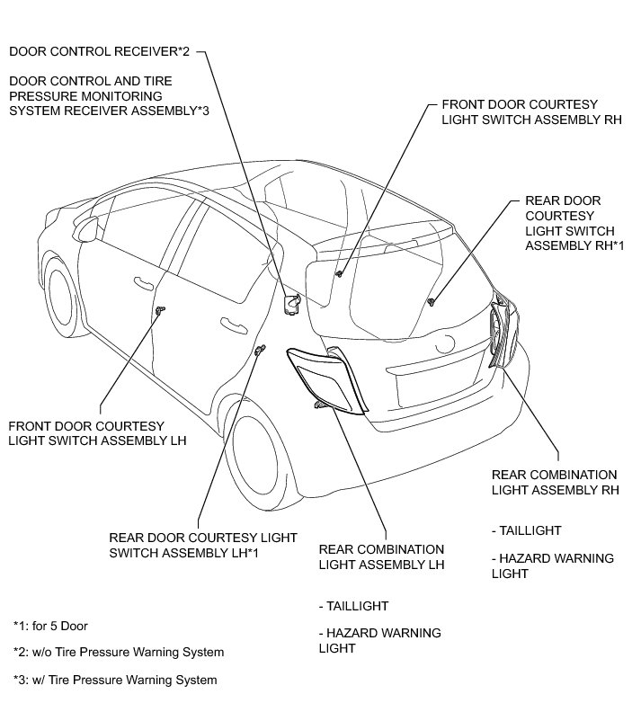 THEFT DETERRENT / KEYLESS ENTRY: THEFT DETERRENT SYSTEM (for Hatchback): PARTS LOCATION