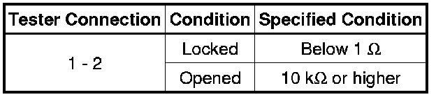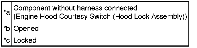 If the result is not as specified, replace the engine hood courtesy switch (hood lock assembly).