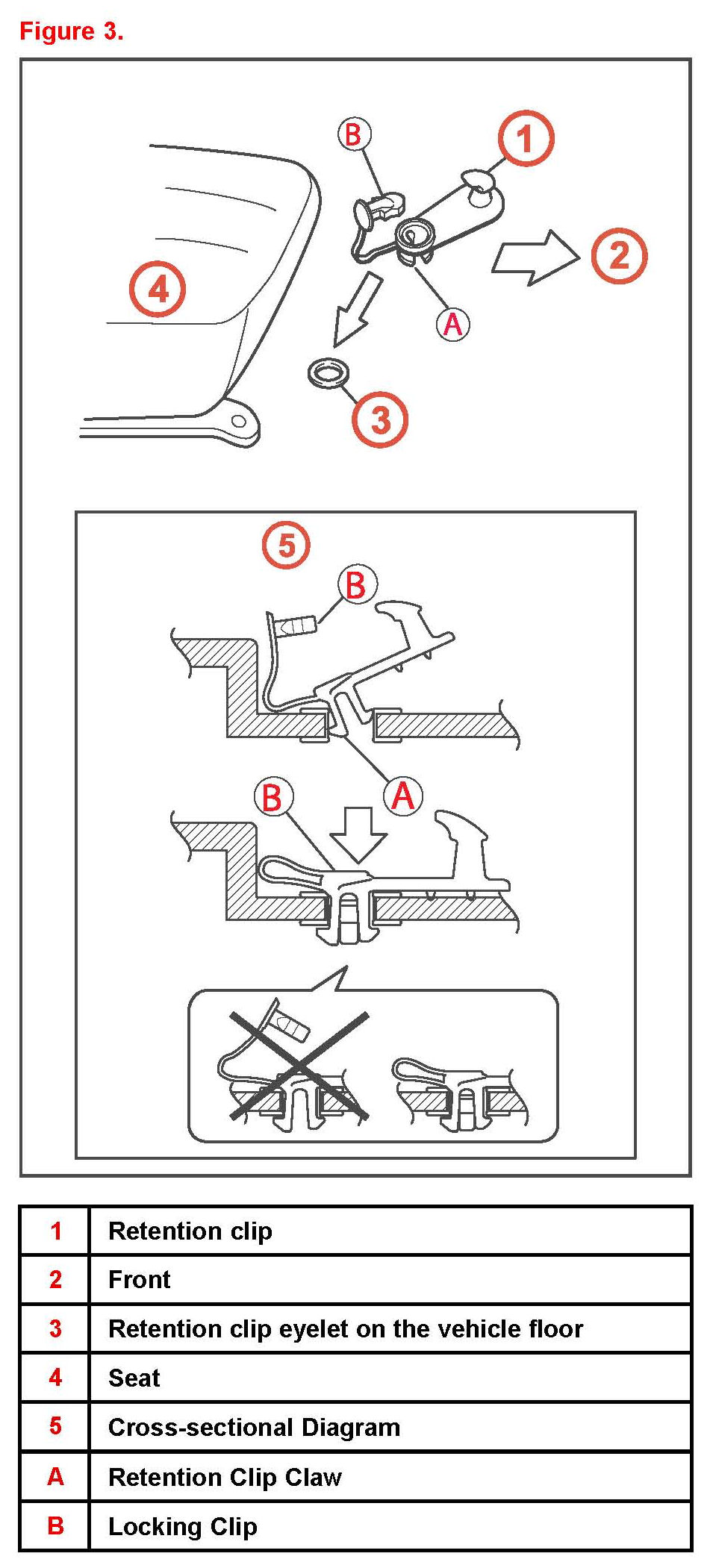 2. Attach the retention clip to the floor by inserting the retention clip claws into the floor eyelet.