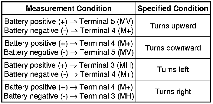(1) Apply battery voltage and check the operation of the outer rear view mirror.
