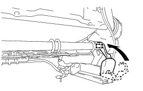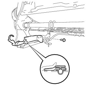 (b) Engage the hook to install the front seat cushion lower shield LH as shown in the illustration.
