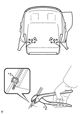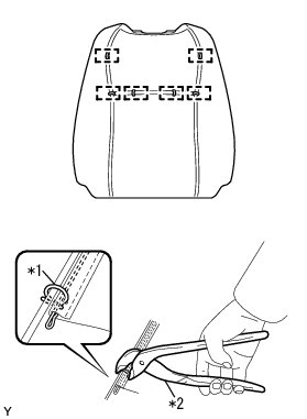 (a) Using hog ring pliers, install the separate type front seatback cover to the separate type front seat back pad with 6 new hog rings.