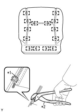 (a) Using hog ring pliers, install the separate type front seat cushion cover to the separate type front seat cushion pad with 14 new hog rings.