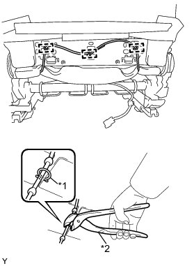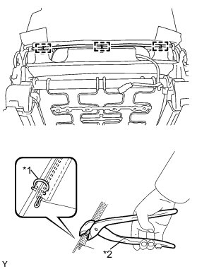 (c) Engage the 3 clamps to install the front seat side airbag wire harness. (w/ Front Seat Side Airbag)