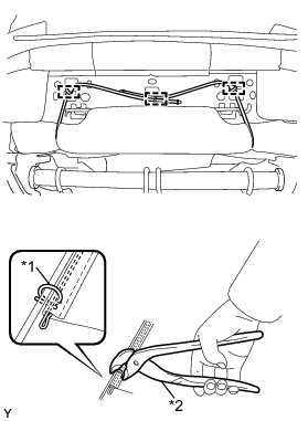 (b) Using hog ring pliers, install the 2 new hog rings.