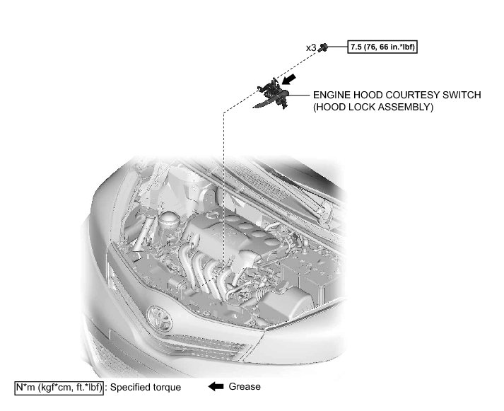 THEFT DETERRENT / KEYLESS ENTRY: ENGINE HOOD COURTESY SWITCH (for Hatchback): COMPONENTS