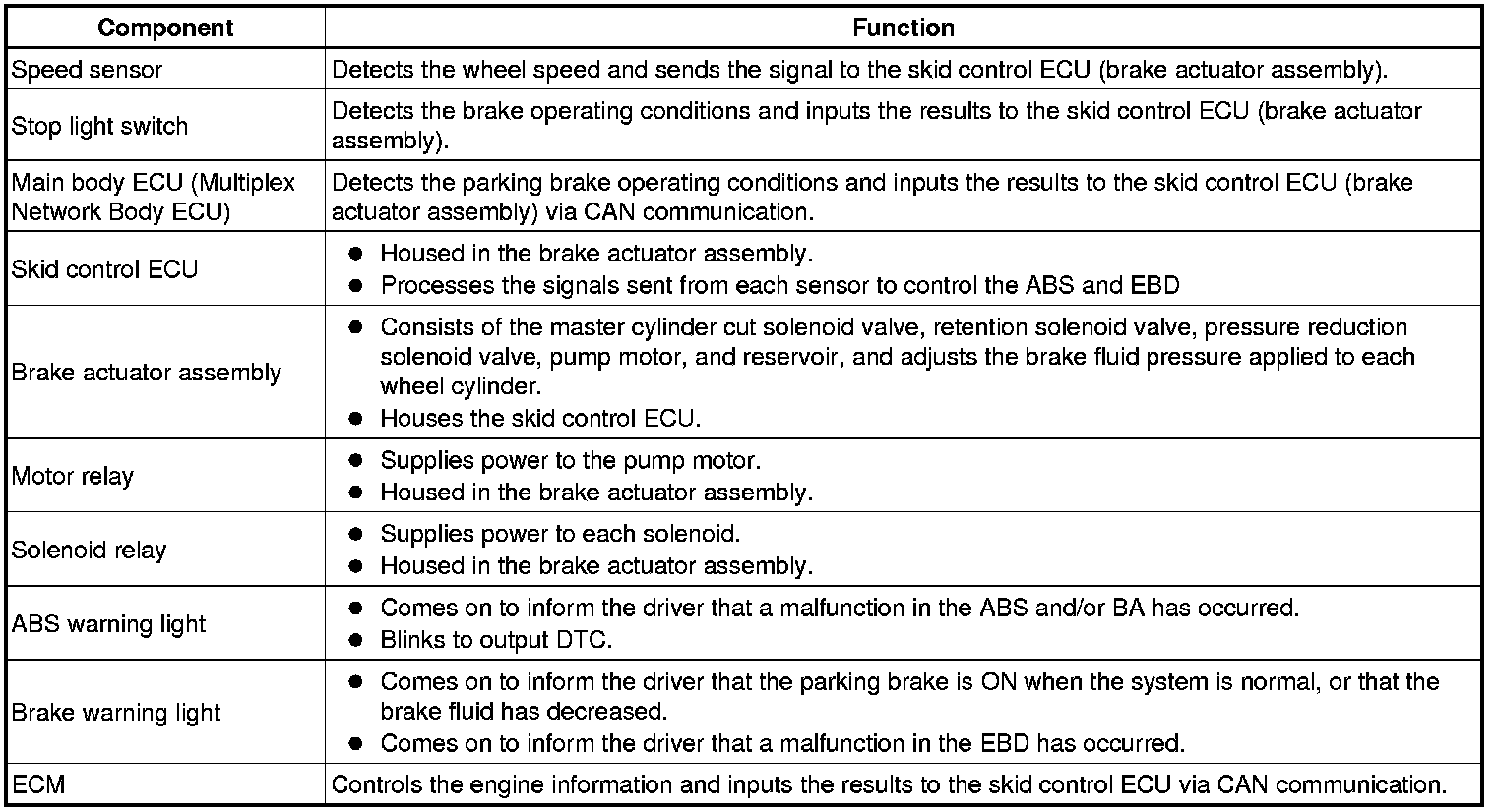 BRAKE CONTROL / DYNAMIC CONTROL SYSTEMS: ANTI-LOCK BRAKE SYSTEM (for Hatchback): SYSTEM DESCRIPTION