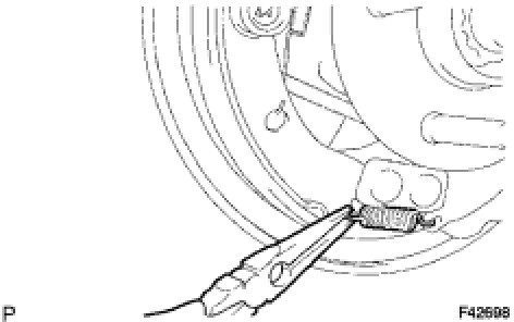 (h) Using SST, install the shoe return spring onto the front brake shoe.