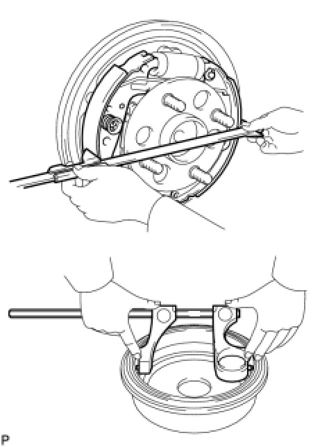 (e) Install the parking brake shoe strut set as shown in the illustration.
