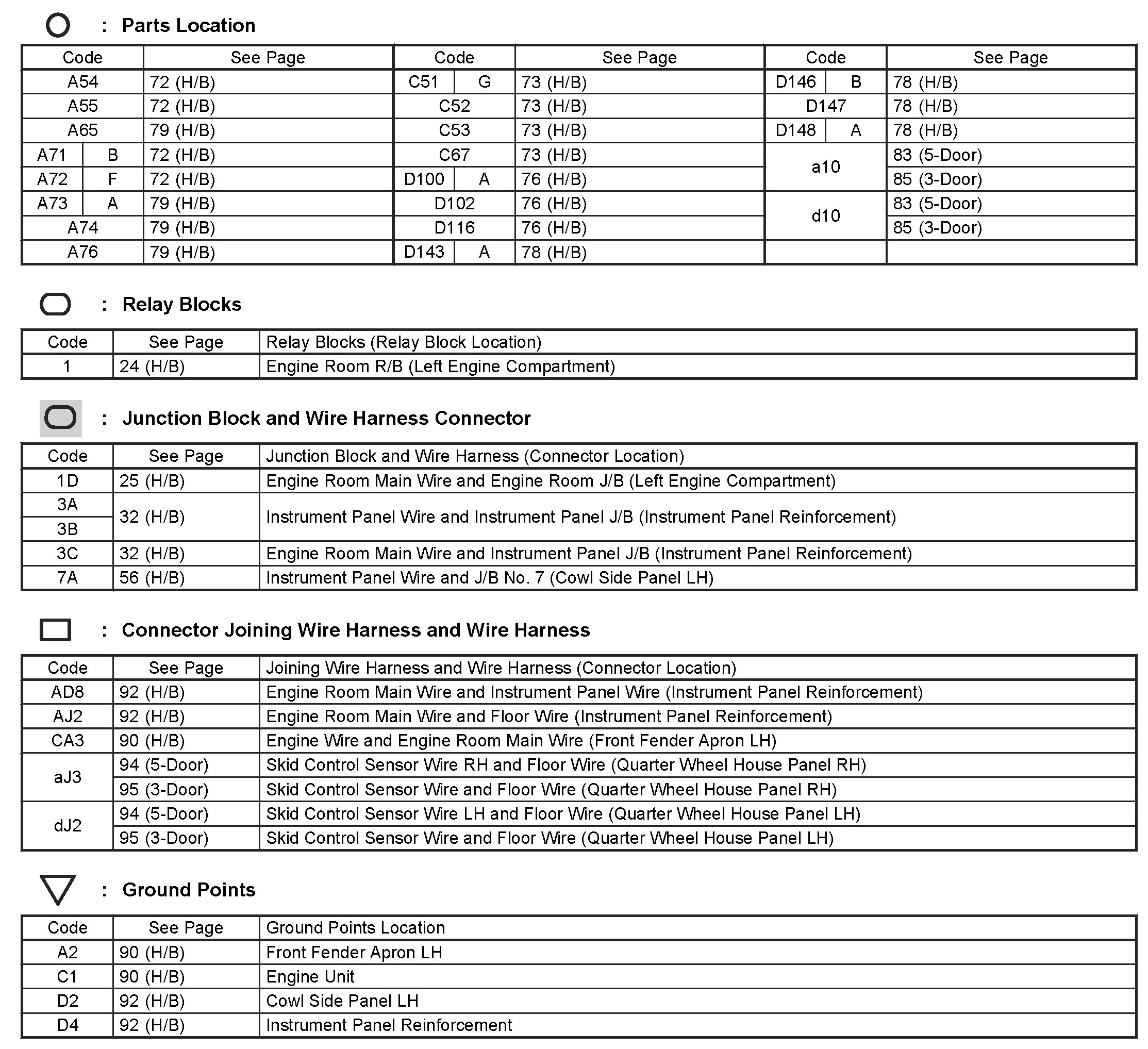 Locations: The locations of components, connectors, ground points, and splices referred to within these diagrams can be found at Vehicle Locations. Locations