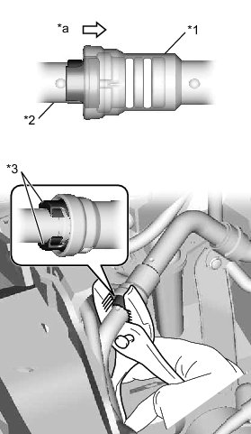(a) While pressing the end of the suction hose into the end of the air conditioner tube and accessory, use pliers to squeeze together both sides of the piping clamp until it breaks apart.