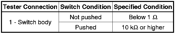 If the result is not as specified, replace the front door courtesy light switch assembly.