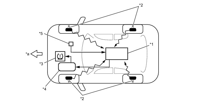 (a) During initialization, the tire pressure warning valve and transmitters measure the inflation pressure of the tires, and register the signals that are transmitted into the tire pressure warning ECU and receiver at a frequency of about once per minute. The initialization process is completed when signals from all tires (except the spare tire) have been received.