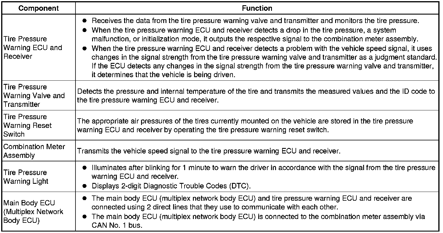 TIRE PRESSURE MONITORING: TIRE PRESSURE WARNING SYSTEM (for Hatchback): SYSTEM DESCRIPTION