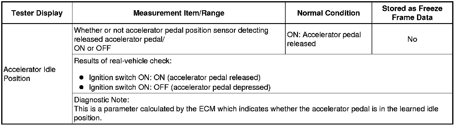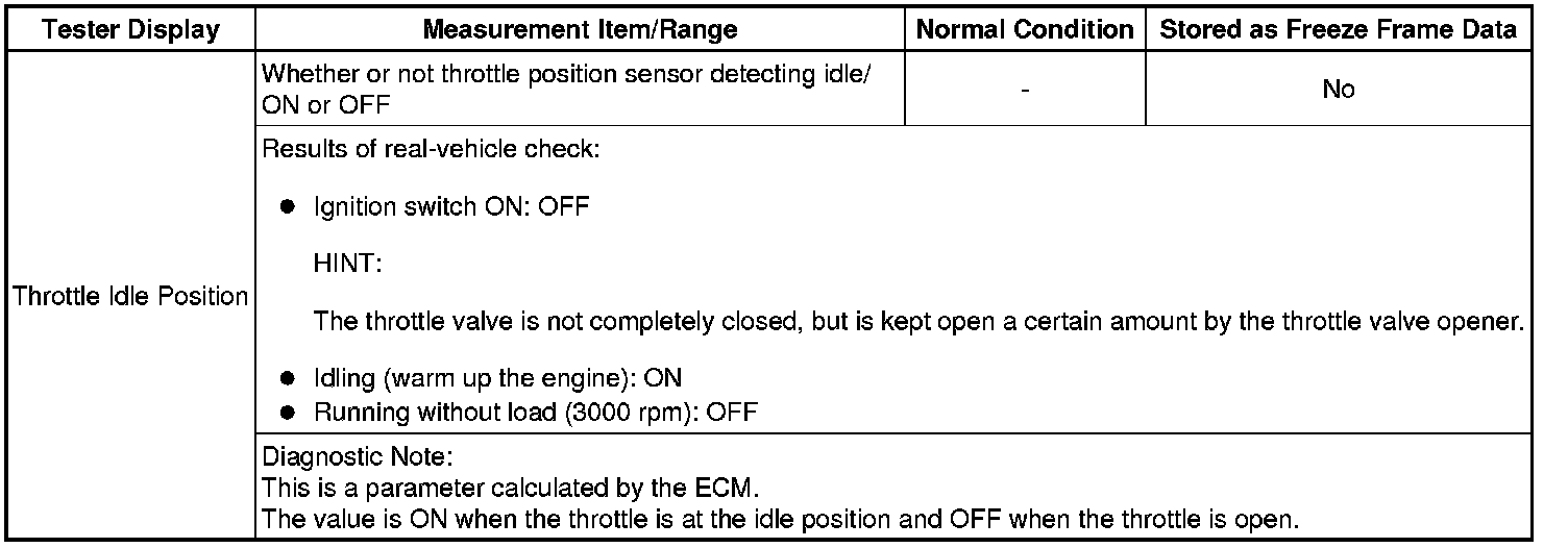 Normal Condition: If no conditions are specifically stated for "idling", the shift lever should be in N or P (neutral), the A/C switch should be off and all accessory switches should be off.