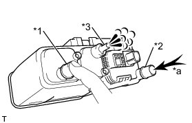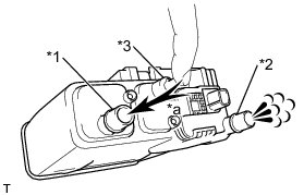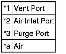 (1) With the purge port closed, blow 5 kPa (0.05 kgf/cm2, 0.7 psi) of air into the vent port, and check that air flows from the air inlet port.