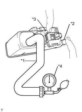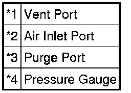 (2) With the purge port and the air inlet port closed, apply 20 kPa (150 mmHg, 5.91 in.Hg) of pressurized air into the vent port, then confirm that pressure is retained for 1 minute.
