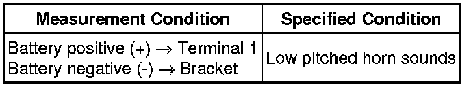If the result is not as specified, replace the low pitched horn assembly.