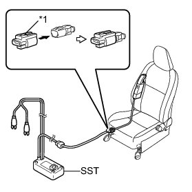 (1) Connect the SST connector to the front seat side airbag assembly connector.