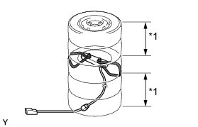 (1) Place at least 2 tires under the tire to which the front seat side airbag assembly is tied.